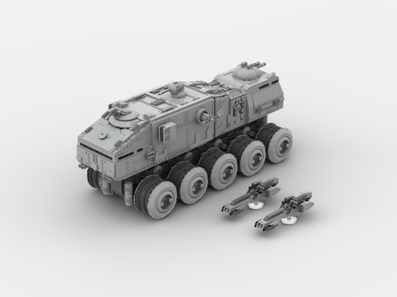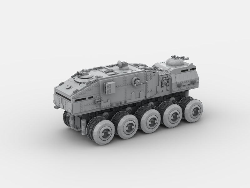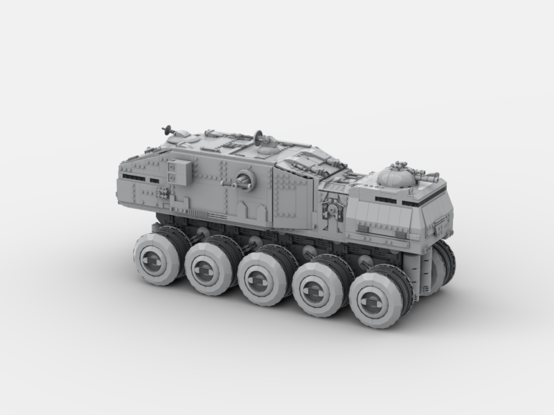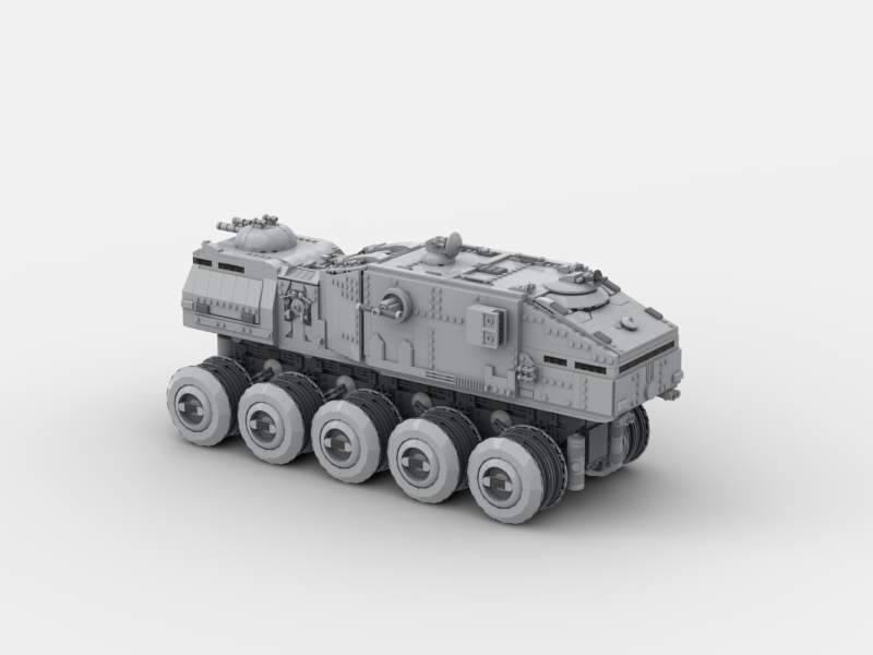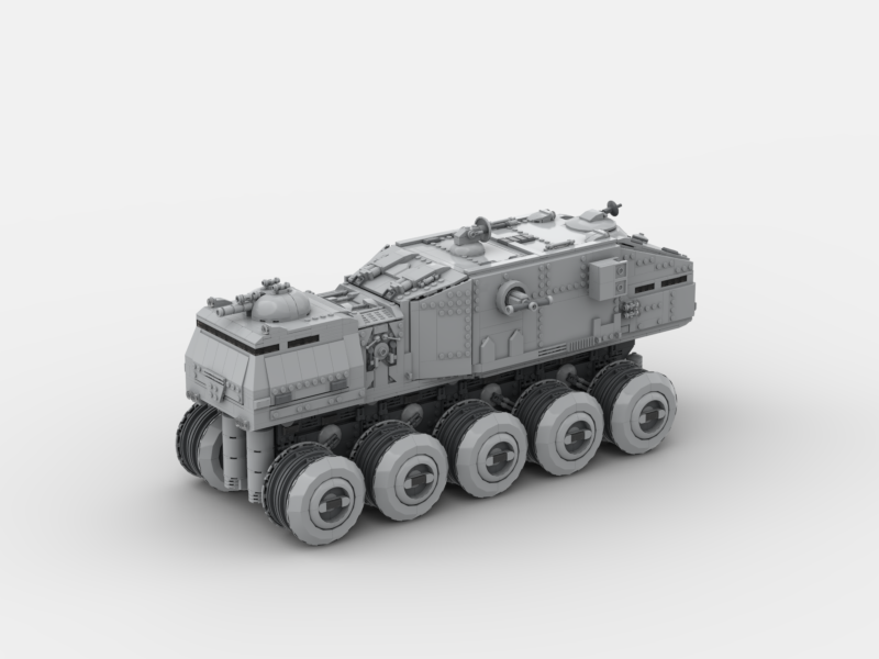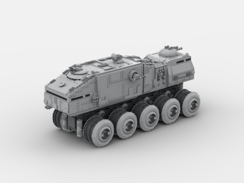 The Imperial HAV A6 Turbo Tank was a colossal 10-wheeled war machine deployed by the Galactic Empire in the years following the Clone Wars. Evolved from its Republic-era predecessor, it was engineered for maximum battlefield dominance, combining overwhelming firepower with heavy-duty troop transport capabilities. Outfitted with reinforced armor plating, powerful laser turrets, and advanced targeting systems, the HAV A6 was equally suited for crushing fortifications as it was for sweeping through hostile terrain. Towering over standard ground units, it served as both a frontline assault platform and a moving fortress, embodying the Empire’s doctrine of fear and military superiority.