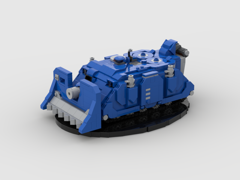 The Vindicator is used by the Space Marines as a siege tank, and is armed with a Demolisher Cannon which is used against enemy structures. The Vindicator is also commonly equipped with large dozer blades known as Siege Shields that protect the tank from enemy fire and allow it to move rubble and debris out of the way.
